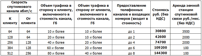Специальное предложение: Спутниковый Интернет и IP-телефония в одной «тарелке» Комплексное предложение для корпоративных пользователей, включающее:         1) БЕЗЛИМИТНЫЙ спутниковый Интернет с ГАРАНТИРОВАННОЙ скоростью от 64 до 2048 Кбит/с по специальным тарифам (см. таблицу) через симметричные/асимметричные выделенные SCPC-каналы на новом спутнике Азиасат-5 (выведен на орбиту в августе 2009 г.).         2) Организация IP-телефонии по льготным тарифам (тарифы см. КипФон) без увеличения платежей за Интернет-трафик и/или спутниковый канал, включая БЕСПЛАТНОЕ выделение телефонных номеров и линий БЕЗ ЕЖЕМЕСЯЧНОЙ АБОНЕНТСКОЙ ПЛАТЫ.         3) При создании корпоративной сети на базе выделенных спутниковых каналов и/или интеграции их с имеющейся наземной корпоративной сетью заказчика - организация БЕСПЛАТНЫХ внутрисетевых звонков.         4) Аренда земных станций спутниковой связи (ЗССС) «БЕЛКОМ VSAT-2» с антеннами диаметром 2.4 м / 3.7 м и трансиверами 10 Вт / 20 Вт (С-диапазон 6/4 ГГц) по цене настенных «Интернет-тарелок» (тарифы см. таблицу). При аренде канала от 512 Кбит/с – БЕСПЛАТНОЕ пользование оборудованием ЗССС (100 руб./мес.) ТАБЛИЦА ТАРИФОВ СПЕЦИАЛЬНОГО ПРЕДЛОЖЕНИЯ (xls, 16 kb)