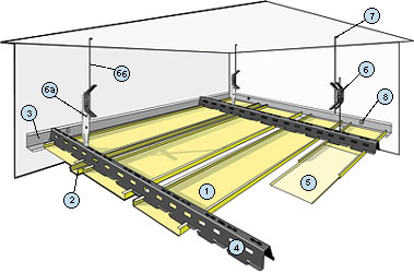 Потолок реечный металлический с заполняющим профилем Введите размеры Ширина,м Длина ,м Наименование Расход материала Ед. измерения 1 Профиль реечный, тип "А" 84/12 пог.м 2. Заполняющий профиль 16/11 пог.м 3 Профиль угловой декоративный 22/22 пог.м 4 Профиль трапецеидальный 35/30 пог.м 5 Удлинитель профилей 84/12 шт. 6a Подвес с зажимом "Ситрап" шт. 6б Тяга подвеса шт. 7. Анкерный элемент шт. 8. Дюбель "К" 6/35 шт. Возможная замена материала Вместо подвеса с зажимом и тяги подвеса используется 6. Подвес с зажимом и тягой "Альфа" шт. * количество соответсвует периметру помещения ** количество равно удвоенному числу погонных метров углового профиля